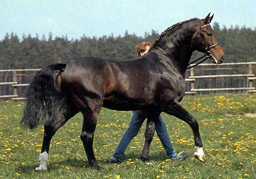 Jument de sport BWP grand modèle. Montée aux 3 allures, cessions à la jambe, épaule en dedans.